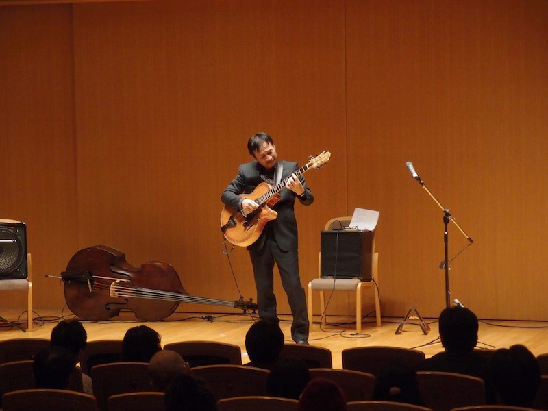 井上と金子の完成度の高いライヴに感動する一方、それに加えて、ギターの模範演奏を対談で生かしてはどうかと思う。ギタリストの特徴、ギタープレイの変遷をギターで弾いて提示してもらえたらと思うし、実際、大阪の国際ジャズデイのワークショップでもスタイルの変遷を実演することがなされていた。小曽根真はワークショップで<枯葉>をさまざまなスタイルで弾き分けて見せた。