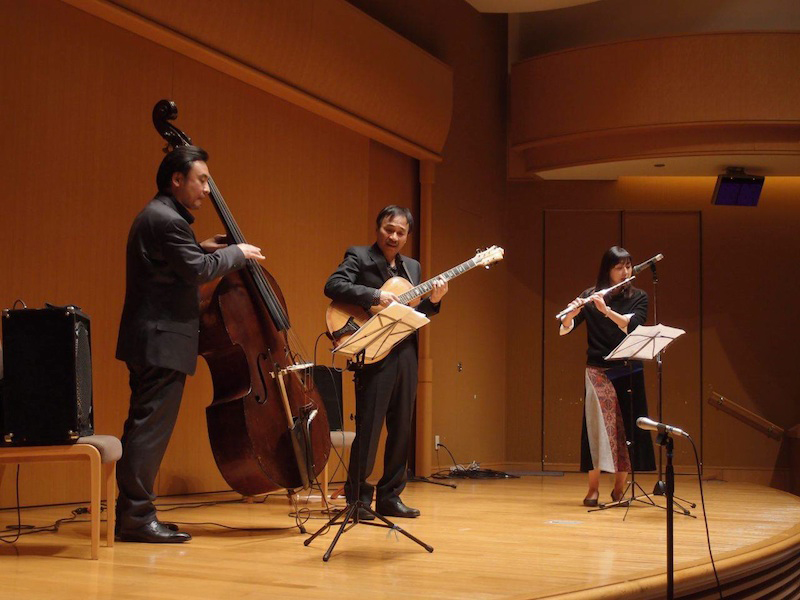 アンコールには、会場からフルートの佐々木優花を招き入れる。佐々木は井上、金子ともツアーを行っている。曲は<赤とんぼ>。この曲には個人的に思い出があり、2005年、ニューヨーク、ヴィレッジ・ヴァンガード70周年ライヴにジム・ホールを聴きに行くと、すでに満員で断られる。覗き込んだ会場内で、ジムと日本人ギタリストが<赤とんぼ>を弾くのが見え、しばらくドアの外で聴いていた。ジムが日本の曲をやろうと譜面を持ってきたという。あのときの1曲を佐々木の美しいフルートの響きとともに優しく歌いあげた。