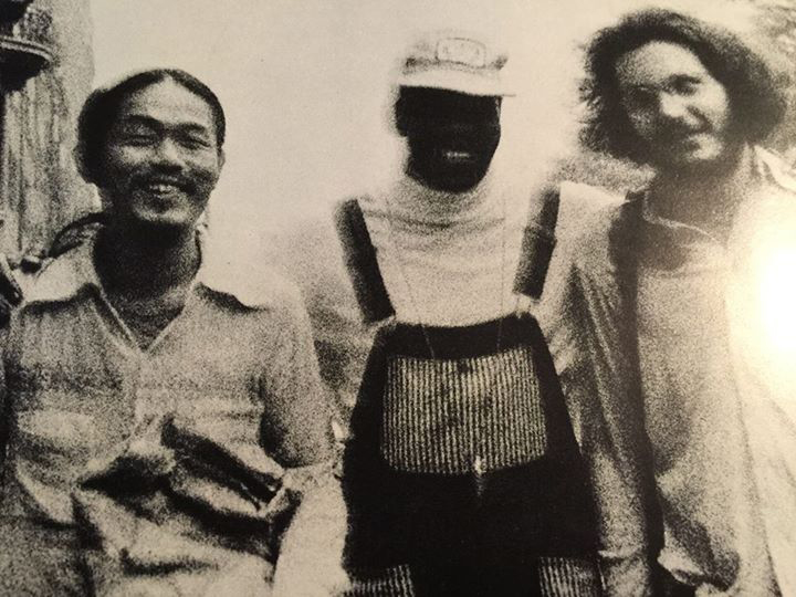 We were very intent upon making the music something special. so we went to Japan again this time at the Pitt Inn in Roppongi it was more amazing performances always surprising. New directions and our destination some times took curves we leaped, we dug underneath the ground, we levitated, but we got there, and when we did Wow! Lookout! To explain how this ensemble would create is very difficult, because you have to bring together the right elements of players to achieve certain goals. Everyone's experience leading up to that moment was very important. Everyone had to bring their A game always, or be devoured in the midst, lol! Back in New York we would always practice and do some occasional hits around the city one time we had Wallace Roney join us on trumpet. Then we had another time that we came to record I don't remember the location but we added a third guitar this time which was Kelvyn Bell so, it was Kelvin, Tomas, myself on guitar Konrad, on bass, Victor Jones on drums, Ayib on percussion, and Poo's friend from Japan Mine played the saxophone that became the recording AAOBB. Poo's love of different styles of music always influenced the direction which the band took. At that time Poo was digging what Prince was doing. The element of Miles Davis is always present because of our connection to Miles.