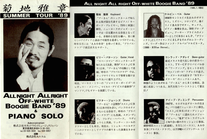 * 1989年のAAOBB「オールナイト・オールライト・オフホワイト・ブギバンド」来日時に制作されたパンフから再録。