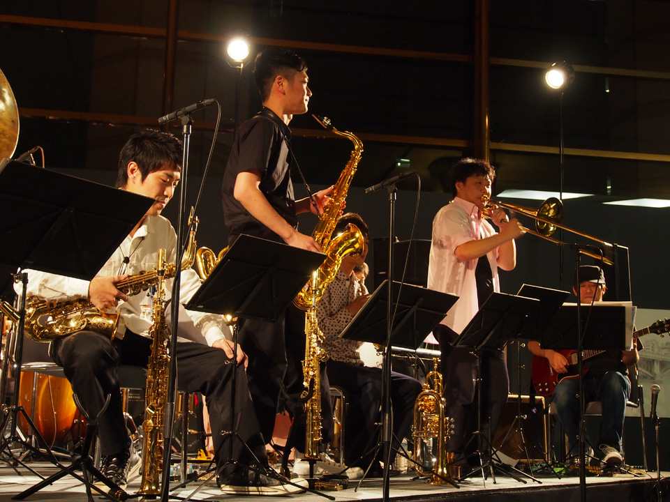大友とビッグバンドがステージに登場し、<あまちゃん オープニングテーマ>で会場が興奮に包まれる。このちょっと風変わりな大ヒットとは無縁に思われる音楽が、日本全国の視聴者の心を掴み、たくさんの人の毎朝の始まりの音楽になり、もはやドラマの大切な一部として欠かせない。脚本の宮藤官九郎も「あまちゃんの底抜けに明るいムードの大部分を担っているのは、あの底抜けに明るいオープニングテーマだと思っています。」と語る。演奏されたのは月曜だけにかかる1分30秒のロングバージョン。最初のメロディーは、1960年代の喜劇映画のような「スーダラ」感があり、リズムはスカのようでもあり、チンドン屋風でもあり、チャンチキの音が絡み、いろいろな要素をごちゃまぜにして幅広い世代の耳になじむ。サビは1980年代の歌謡曲の典型的なコード進行で作られているが、ドラムスが複雑でかっこいいビートを刻んでいるのも見逃せない。そしてロングバージョンでは転調を繰り返しながら高めのキーで最後のメロディーへ。トロンボーンソロも印象的だ。この曲はあまちゃんホームページ http://www1.nhk.or.jp/amachan/ で聴くことができる。