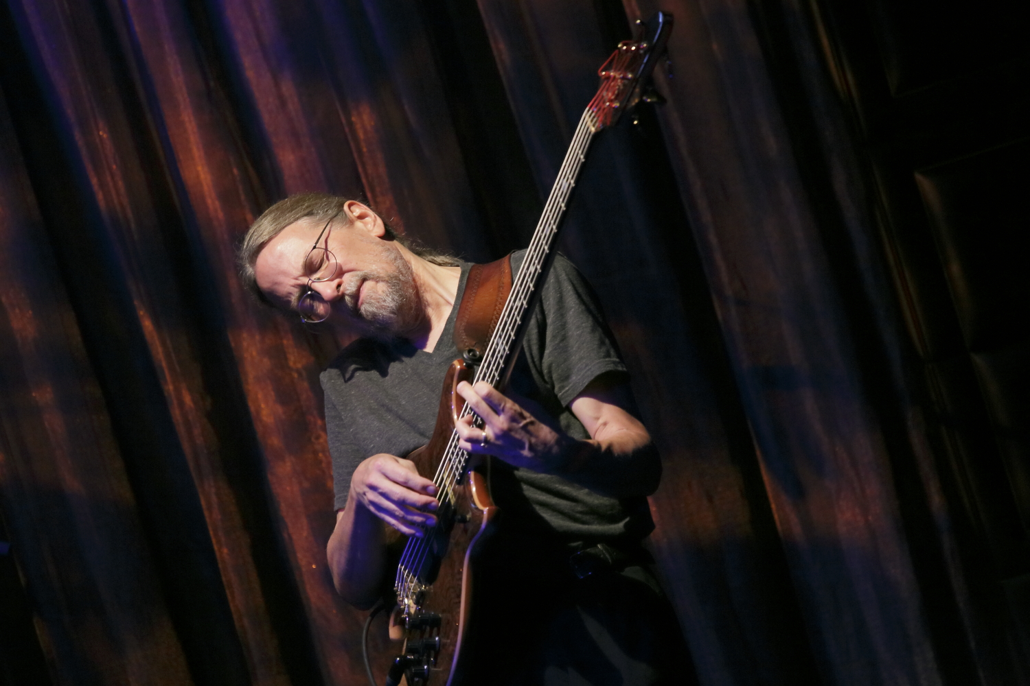 初日の10日第2部は、このメンバーにしてブルースの真髄を見せる<Who Knows Blues>へと続き、2日目の11日1部では、穏やかに歌うアブドゥーラ・イブラヒムの<The Mountain>へと続いた。第1部と第2部ではかなり曲目が違う。『ガッドの流儀』では、ラリー・ゴールディングスが<Ask Me><Cavaliero>を、マイケル・ランドウが<Who Knows Blues>と、魅力的な曲を持ち寄っているが、これらは1部か2部かどちらかでしか聴けない。CD収録曲から両セットで演奏されたのは<The Windup>の他には、全員の共作による<Green Foam>だった。10日第2部では、今年8月に亡くなったジョージ・デュークに捧げる形で<Duke’s Anthem>が演奏された。ウォルト・ファウラーの作曲らしい。